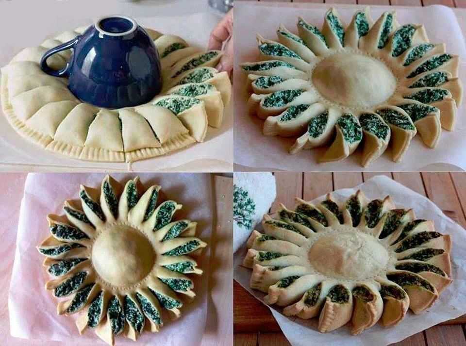 А это уже переход к большим формам. Пирог с молодым шпинатом всегда хорош, а если ему придать ещё и интересную форму — он точно станет темой для обсуждения.