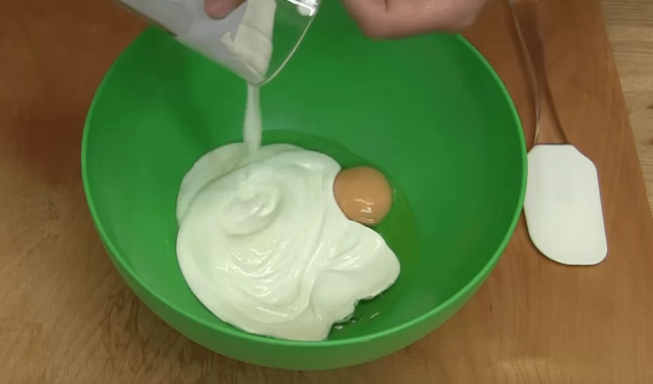 Взбиваем яйцо. Вливаем к жидкости. Еще раз все перемешиваем.