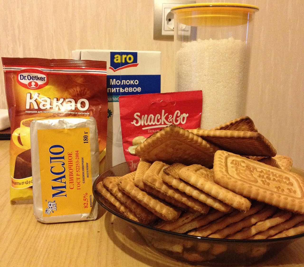 Поиск ингредиентов для приготовления шоколадной колбасы не займет много времени – они найдутся в любом холодильнике или кухонном шкафчике. Предварительно рекомендуется убедиться в сроках пригодности, для сладости нужно использовать только качественные свежие продукты.