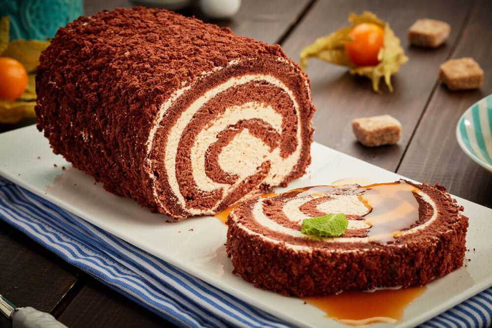 Рецепт 4: шоколадный рулет с творожной начинкой