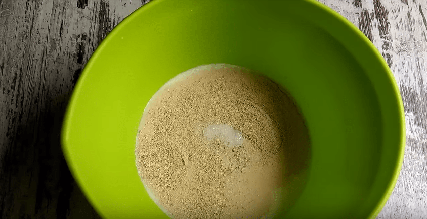 Рецепт не отличается особой сложностью. В теплой воде растворяем сахар, и дрожжи, перемешиваем все. В этом варианте все ингредиенты должны быть комнатной температуры.