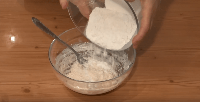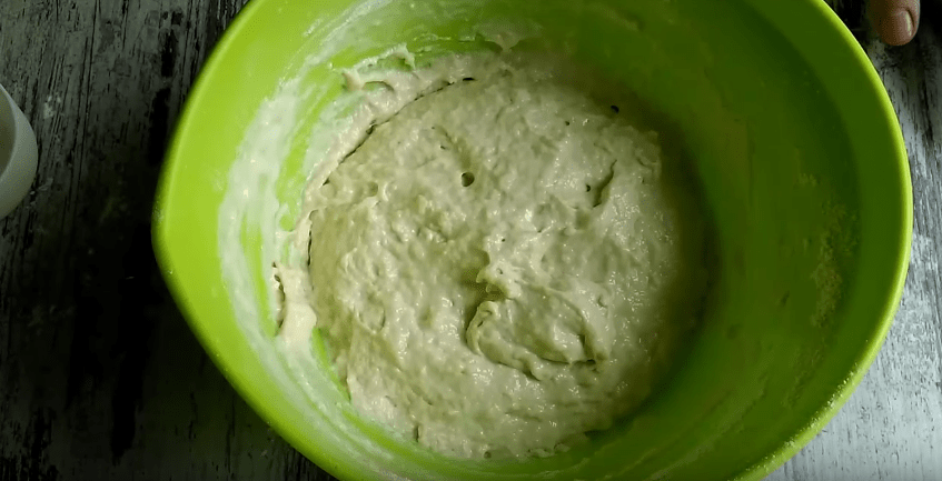 - Соединяю компоненты и вымешиваю из них густое тесто. Если нужно — муку добавляю.