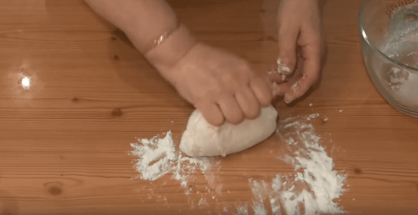 6. Продолжаем замешивать тесто до тех пор, пока оно не перестанет липнуть к рукам. В зависимости от вашей сноровки, на это уйдет от 5 до 15 минут.