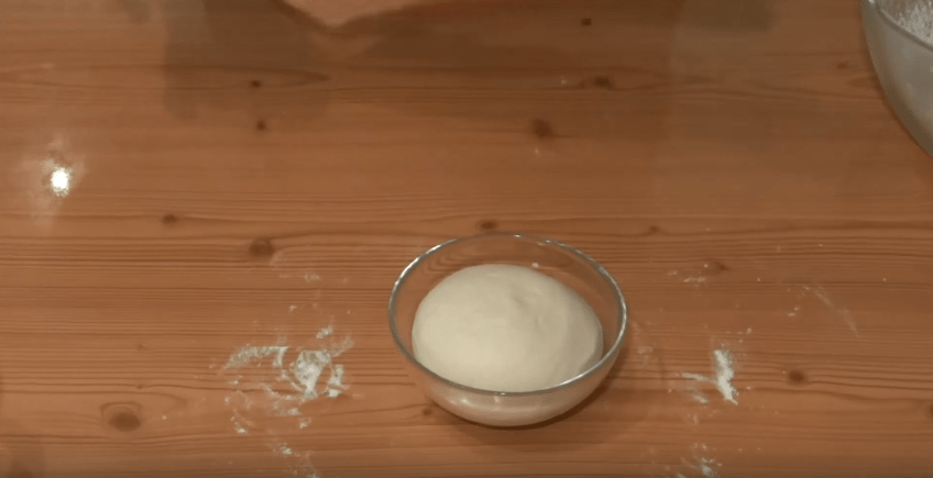 7. Полученное тесто кладем в миску, накрываем салфеткой и ставим его подыматься в теплое место. Ждем около 30 минут, пока тесто не увеличится в объеме раза в 2.