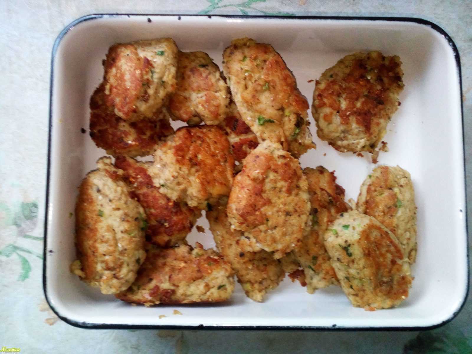 Отделяем мясо от костей и кладем его в глубокую миску. Режем на кусочки и пропускаем через мясорубку. Если мелких косточек многовато – пропустите фарш еще раз через мясорубку. Кладем фарш в дуршлаг, чтобы удалился лишний сок, иначе фарш получится жидким;