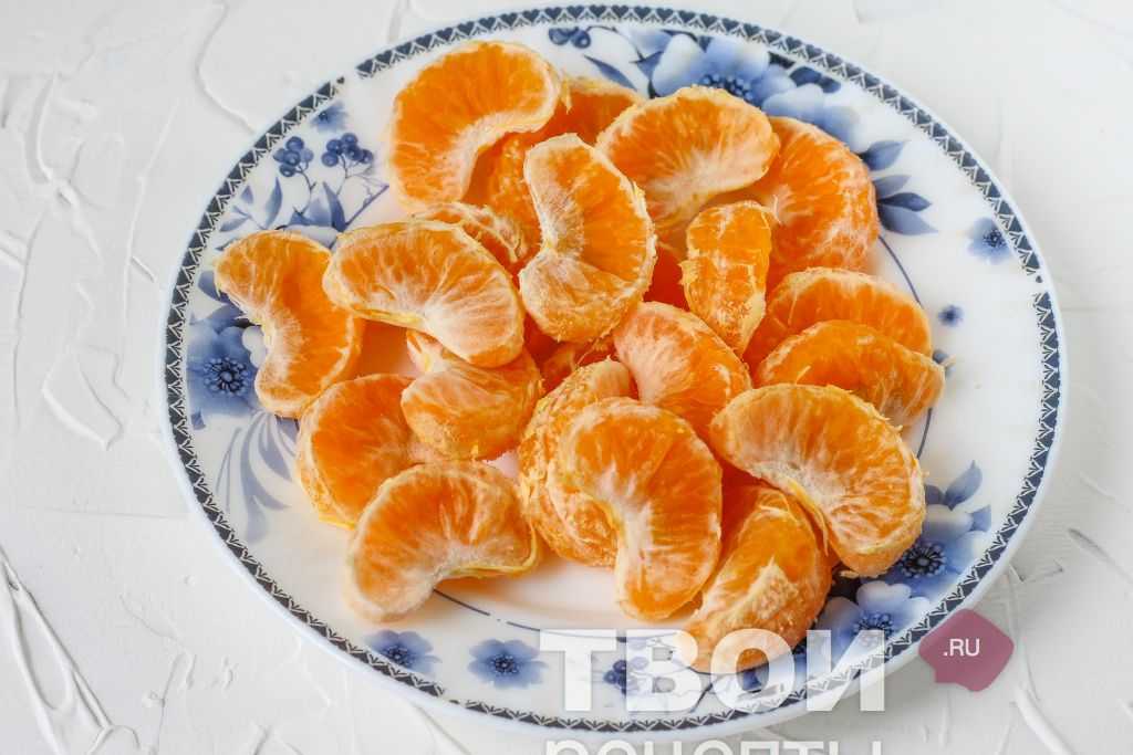 Свежие твердые мандарины хорошо очистите от кожуры. Разрежьте каждый ломтик вдоль на две половинки. Обязательно удалите все косточки.