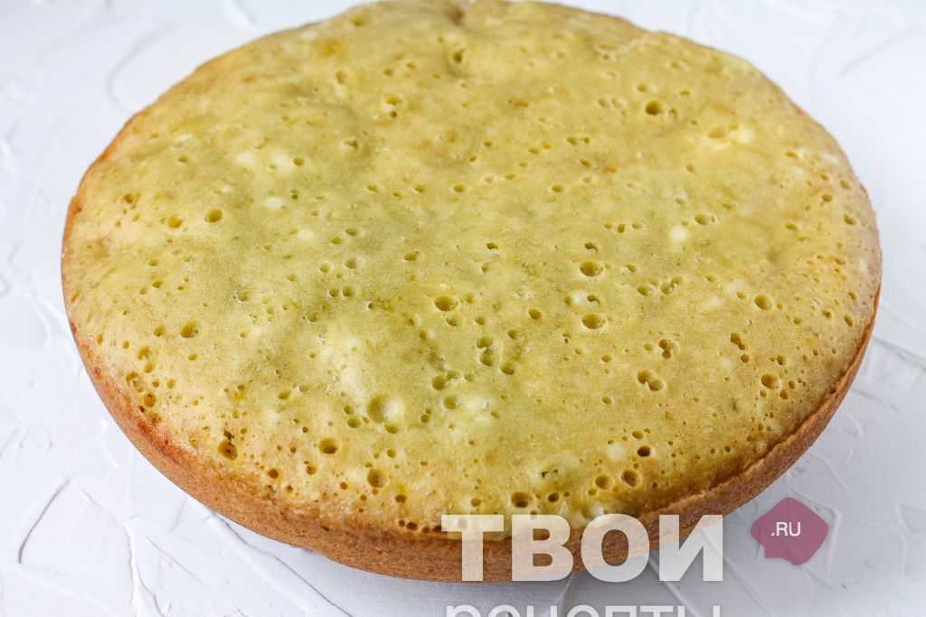 Берем противень, застилаем тефлоновой или пергаментной бумагой. Ставим кольцо для выпечки, выкладываем в него тесто и отправляем в духовку, предварительно разогретую до 160 градусов на 45-50 минут. Готовый бисквит перекладываем на решетку и даем полностью остыть.