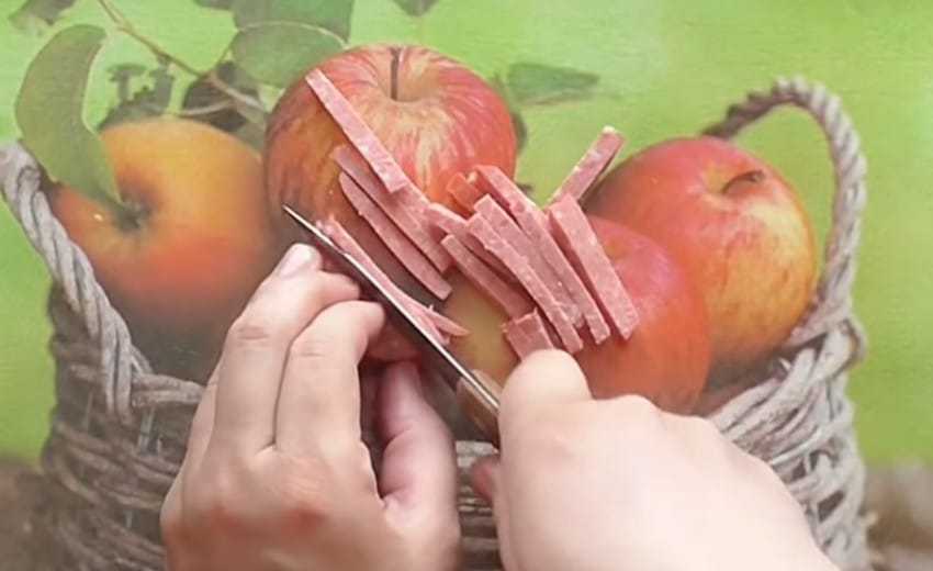 Яблочки чистим от кожуры и семечек. Нарезаем кусочками.