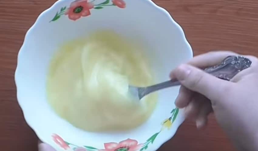 - Приготовить соус из 60 мл майонеза, 60 мл сметаны и черного перца (½ ч. л.).