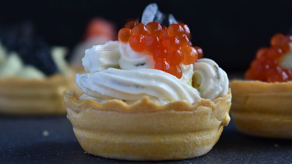 Сырный крем с красной икрой в тарталетках