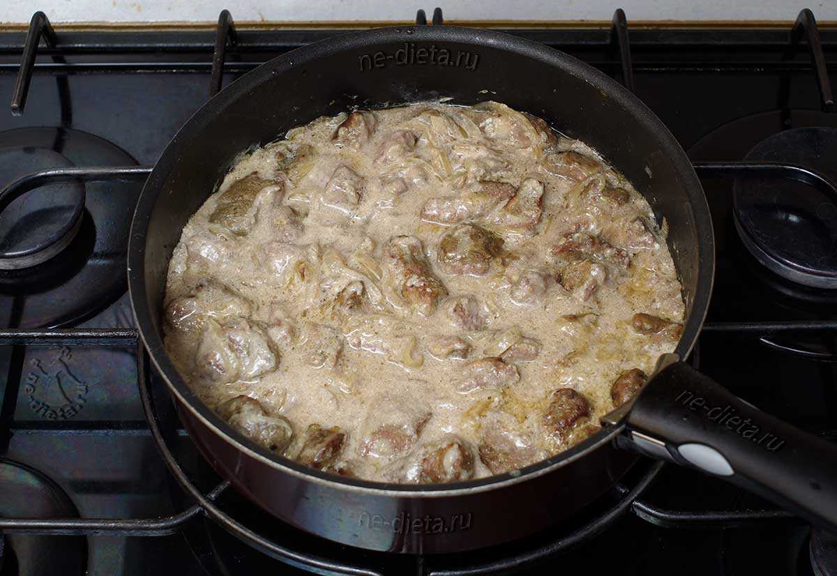 Как приготовить говяжью печень в сметане с луком — рецепт печени говяжьей, тушенной в сметане на сковороде, с пошаговыми фото