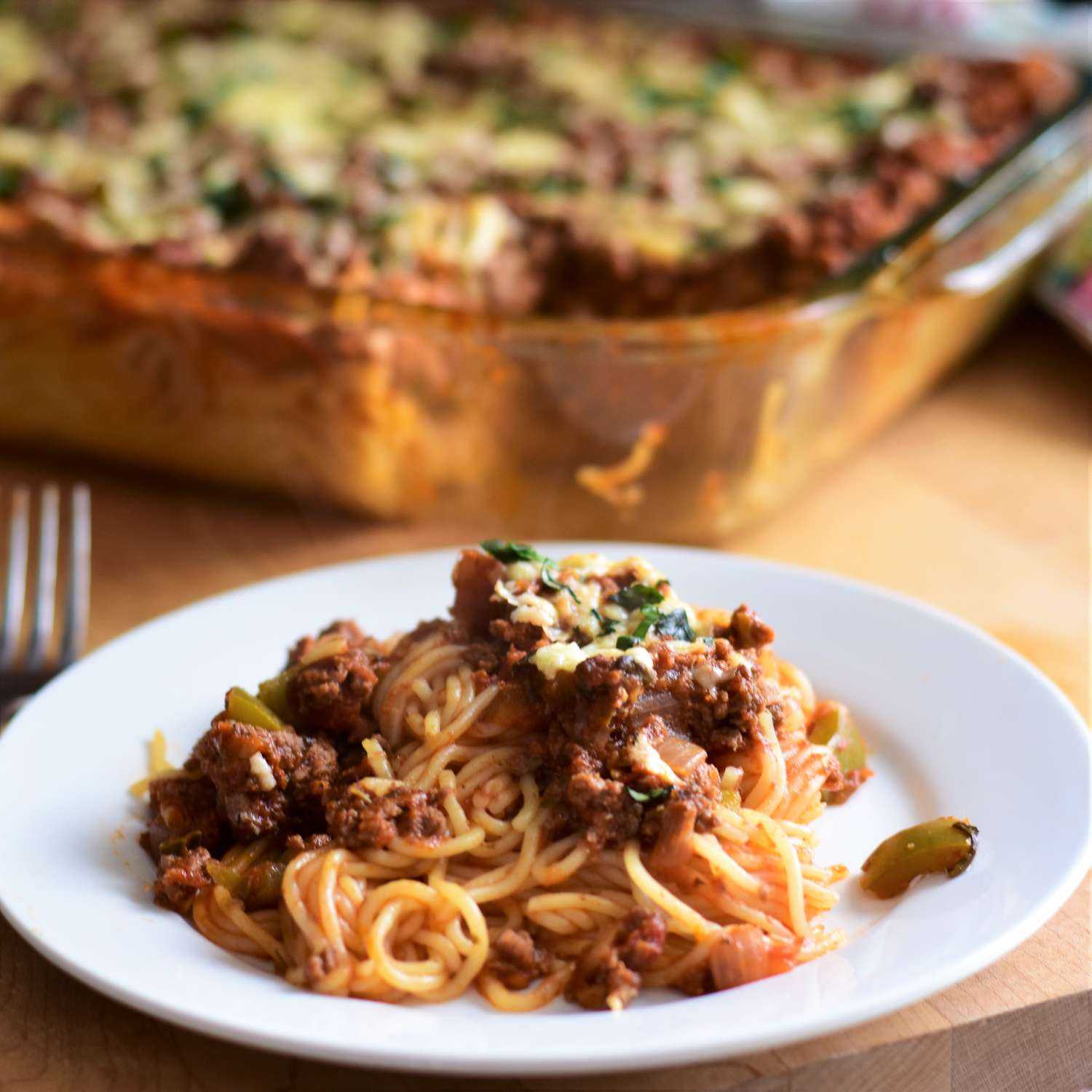 Этот рецепт спагетти с запеченной олениной — невероятно простое основное блюдо. служить на всякий случай. Просто приготовьте спагетти, обжарьте фарш из оленины, затем смешайте все это с томатным соусом и сыром и запеките в духовке!