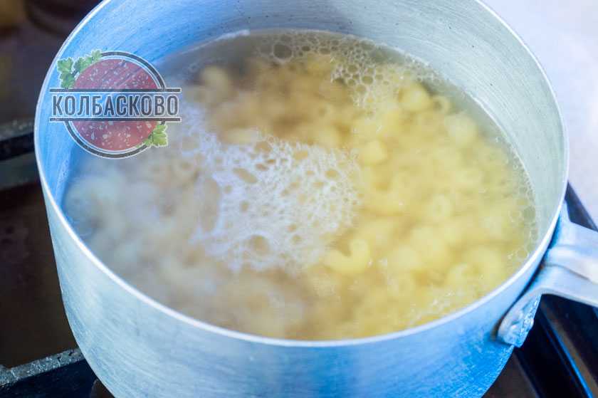 1. В ковш или кастрюлю заливаем фильтрованную воду, доводим до кипения. Солим, добавляем столовую ложку растительного масла (чтобы макароны не слиплись во время варки), а затем и сами макароны.