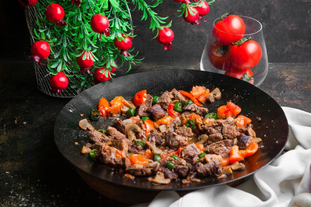 Вариант 2: Тушёная говядина в казане — быстрый рецепт с помидорами и черносливом