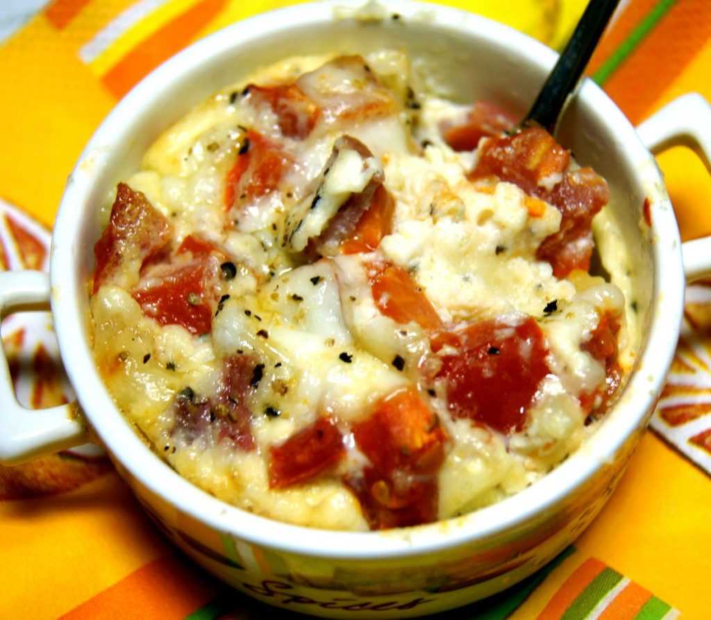 6.Готовый завтрак перенесите в тарелку и угощайтесь. Он отлично пропекается, сыр приятно тянется. Это вкусно и просто!