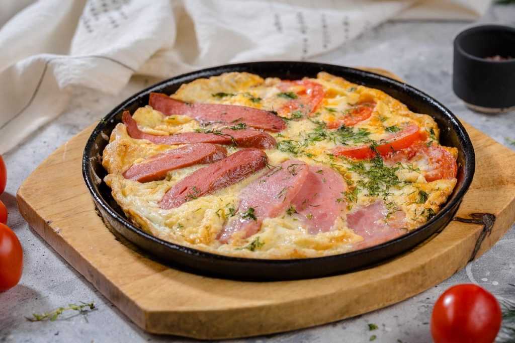 Омлет с помидорами и колбасой – «Омлетная пицца»
