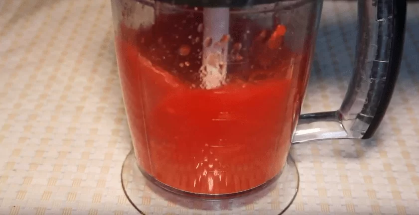 1. Помидоры нужно очистить от кожуры и перебить блендером.