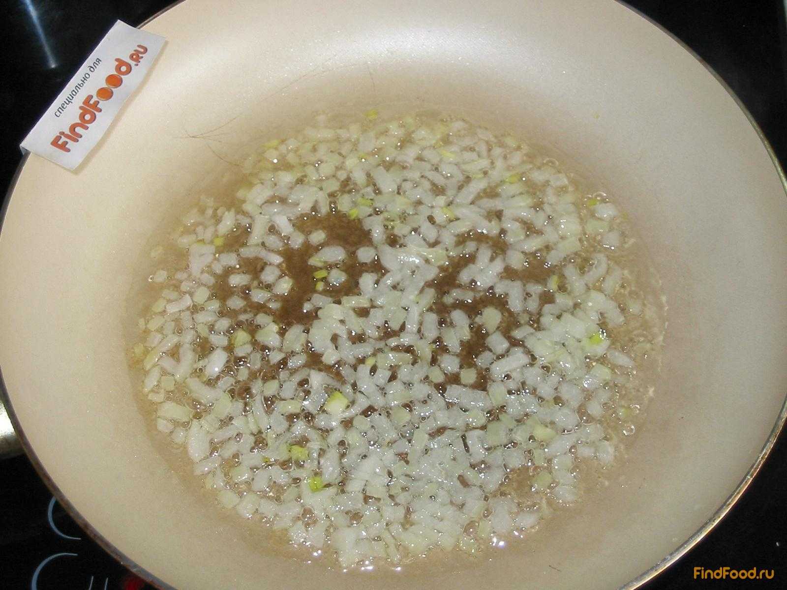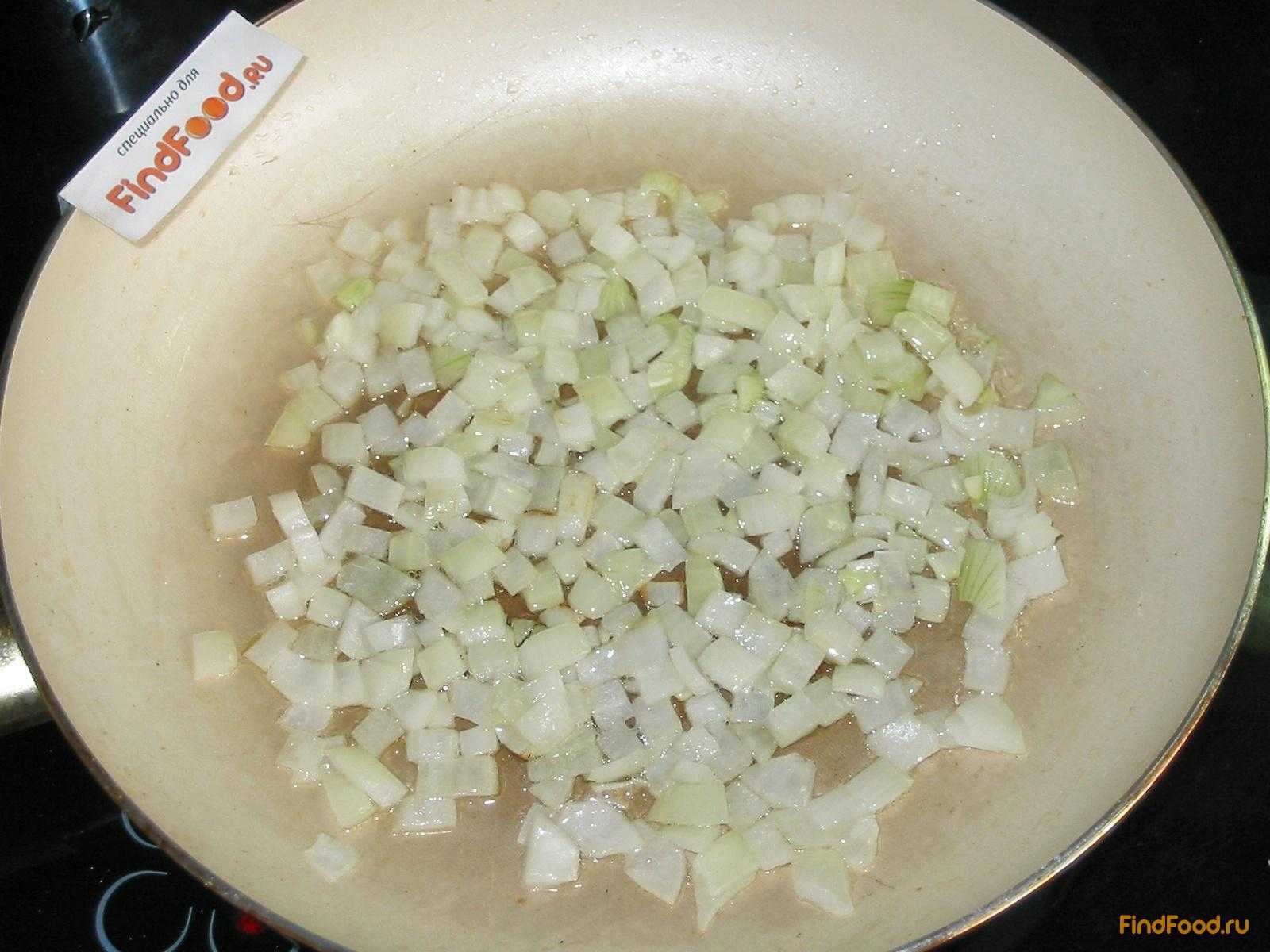 В сковородку наливаем растительное масло и обжариваем в нём лук до светло — золотистого цвета.