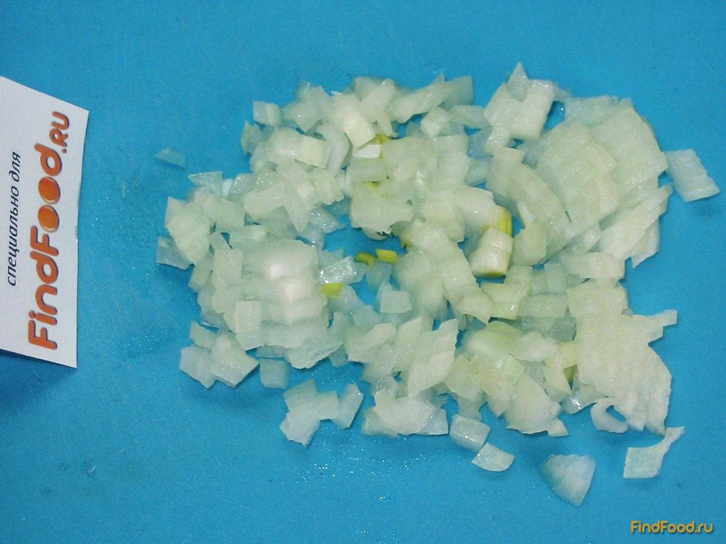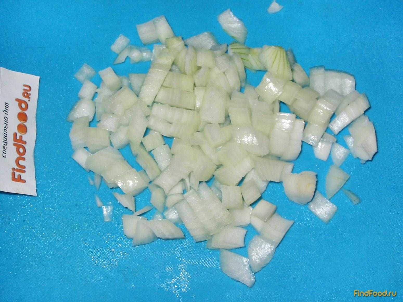 Вторую луковицу тоже нарезаем на кубики, но более крупные.