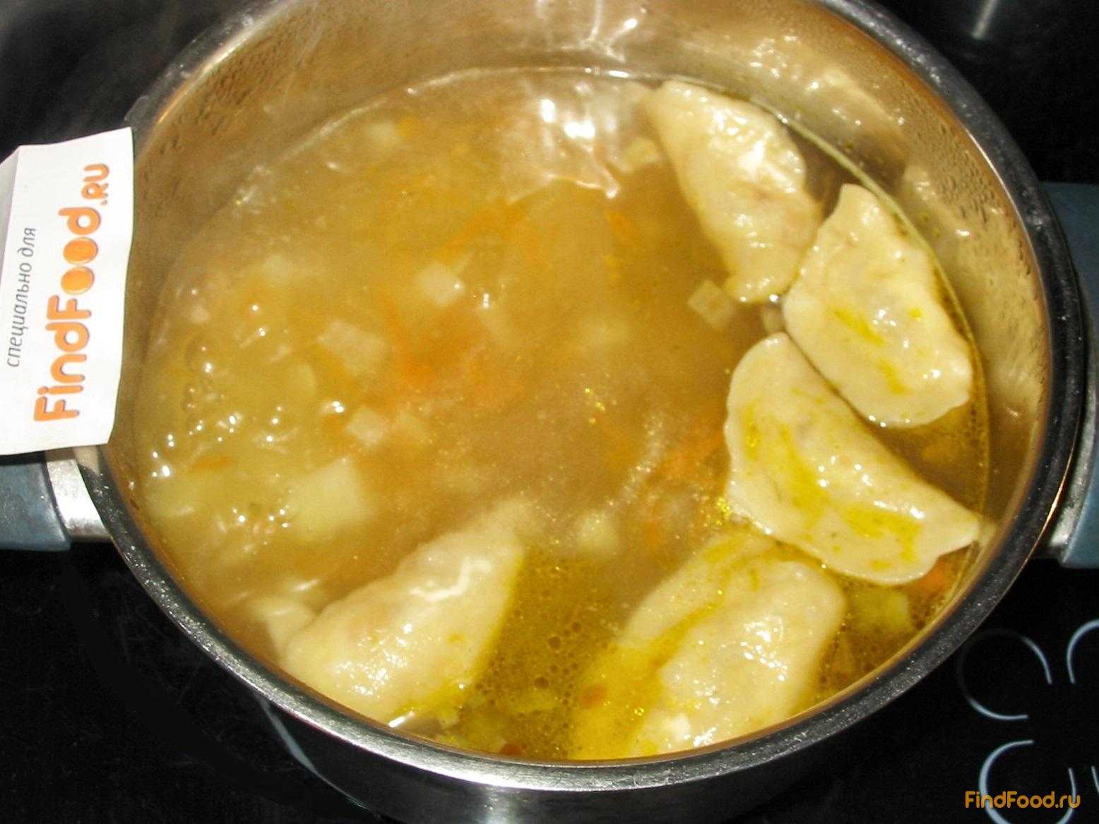 Доводим суп до кипения и добавляем в него капустные пельмени. Варим недолго, около двух — трёх минут.
