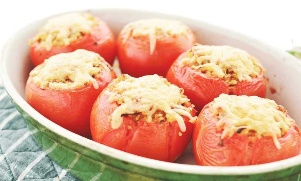 - Нафаршировать помидоры начинкой, переложить в форму. Печь при 180 градусах около 20 минут. За 10 минут до готовности обсыпать томаты натертым сыром.