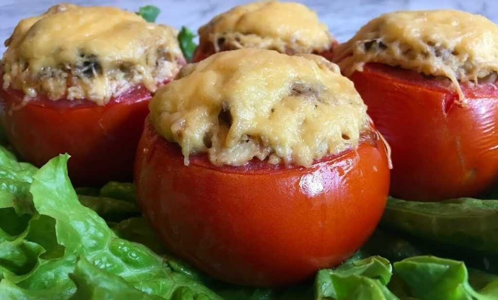 Помидоры фаршированные фаршем и грибами, запеченные в духовке