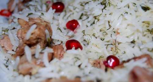 Это «минималистичный» рецепт плова, в котором почти нет овощей и приправ. Основной вкусовой оттенок тут задает свежий укроп, ну а для красивой презентации плова использована горстка гранатовых зерен. Этот простой плов с говядиной в мультиварке мы приготовили из: