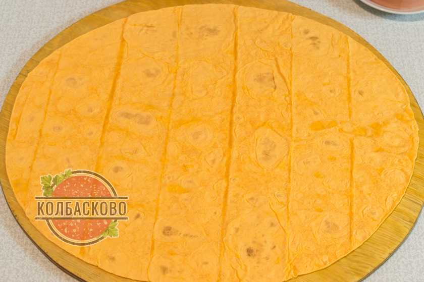 - тонкий лаваш — 4 штуки диаметром 36 см;