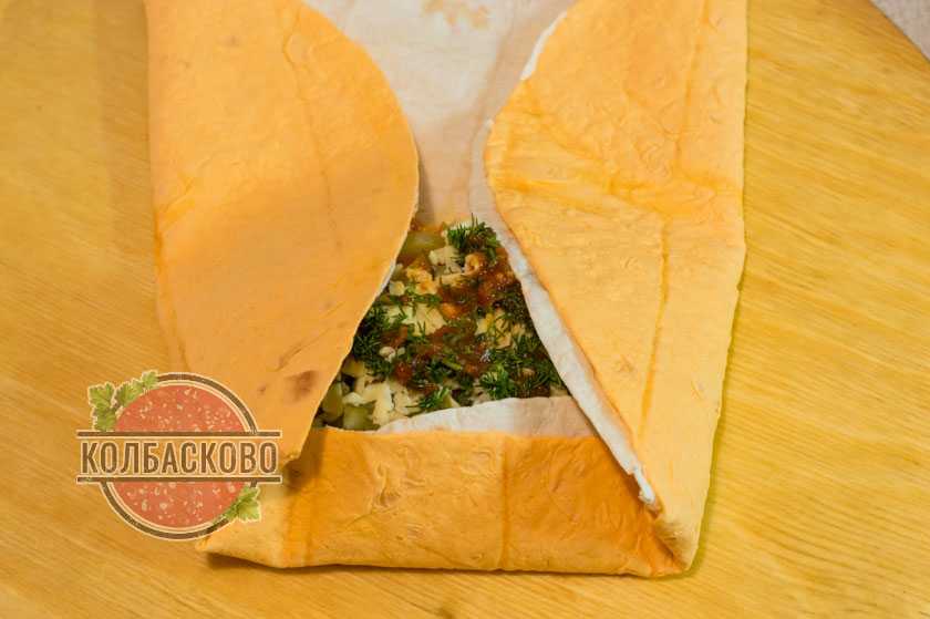 14. Загибаем лаваш снизу, а затем слева и справа.