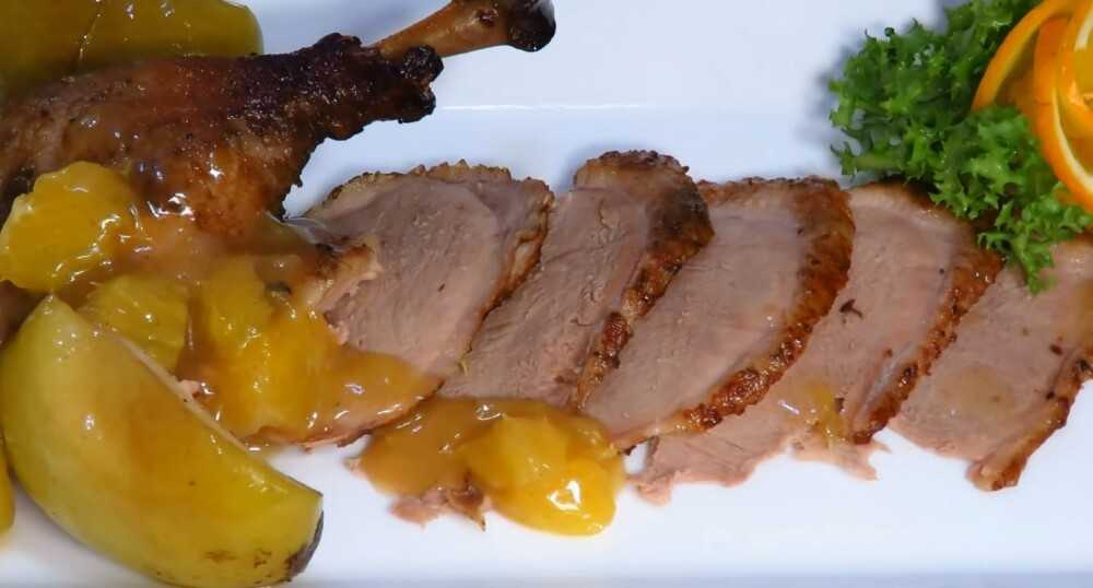 Да, плюс еще одна фишка — густой, насыщенный апельсиновый соус, с которым вкус утиного мяса заиграет новыми красками!