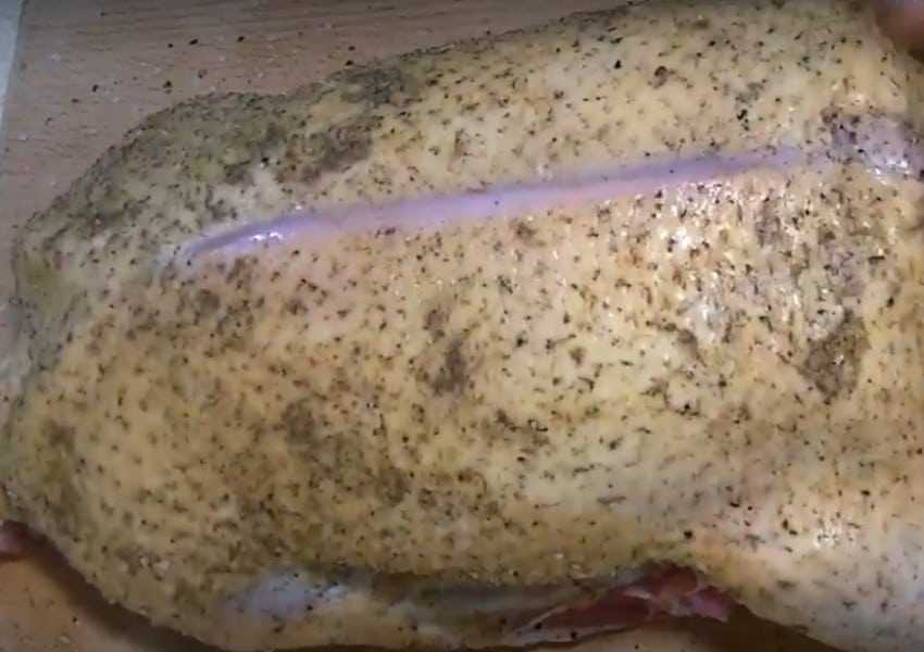 Просто в соленом растворе или в маринаде — в общем-то не так важно… Главное, чтобы она провела достаточно времени в жидкости, в которой есть соль. Почему именно в жидкости? Потому что если солить сверху сухую утку, соль при готовке будет вытягивать из нее влагу