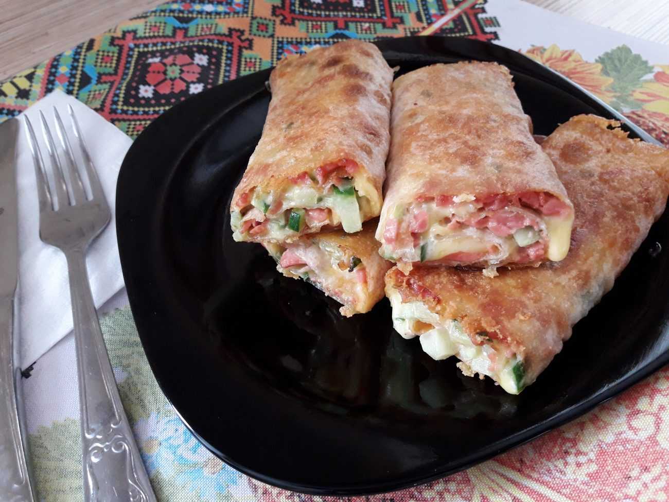 Рецепт 1: колбаса в лаваше на сковороде (пошаговые фото)