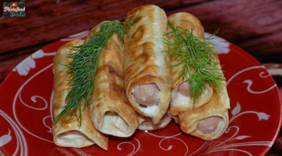Рецепт 7: рулетики из лаваша с колбасой на сковороде в яйце