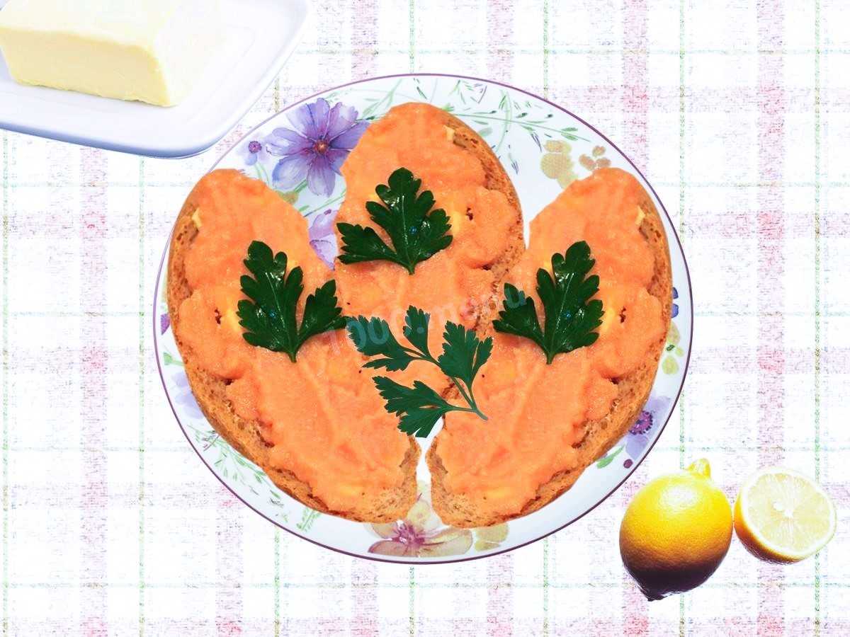 3. Нарезаем хлеб на порционные кусочки и намазываем их икрой с луком.