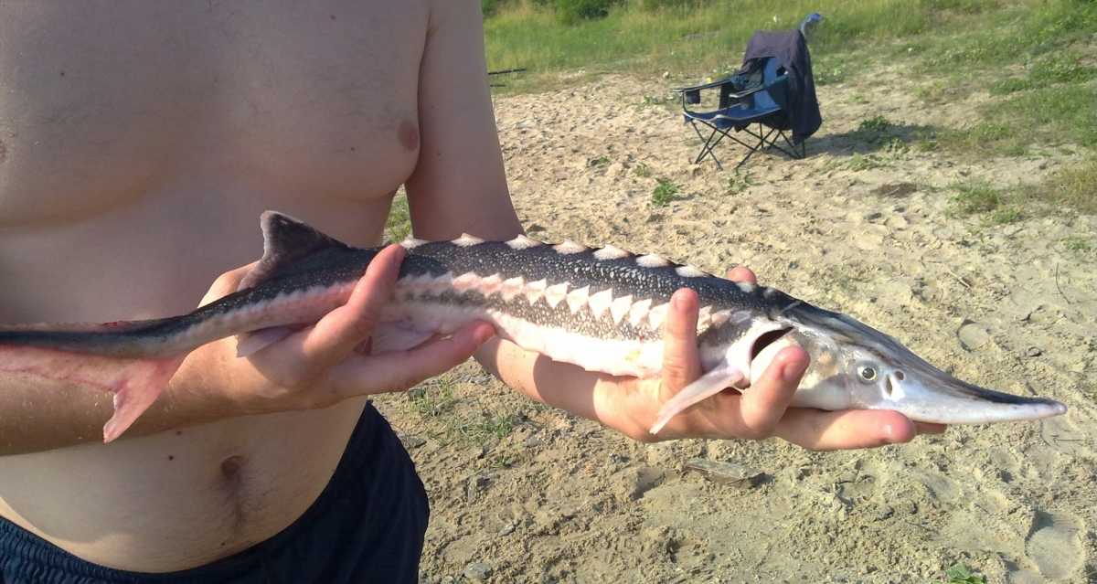 У озерного осетра голова лопатообразной формы с четырьмя усиками на морде, что помогает им обнаруживать пищу.