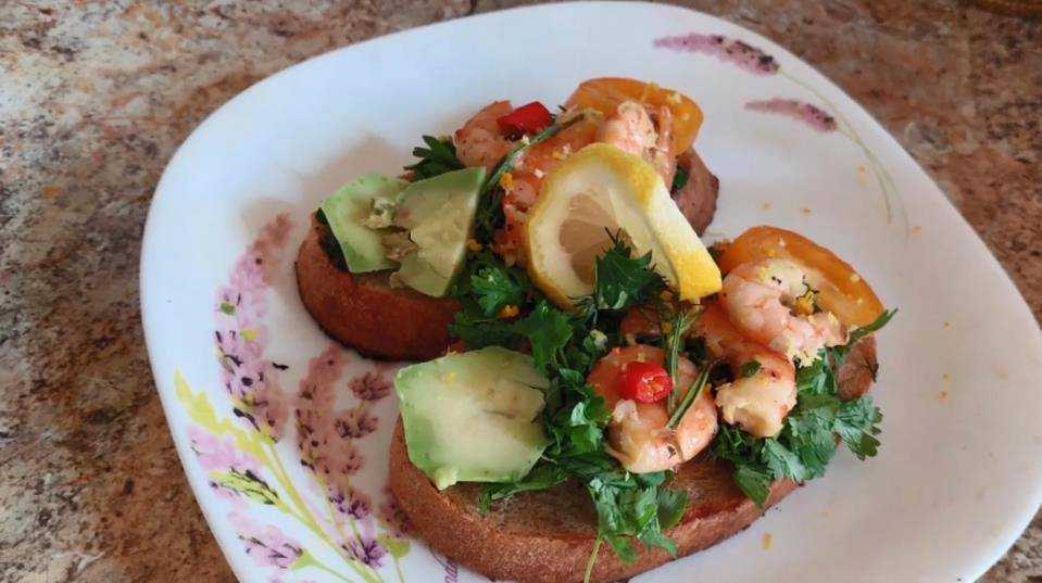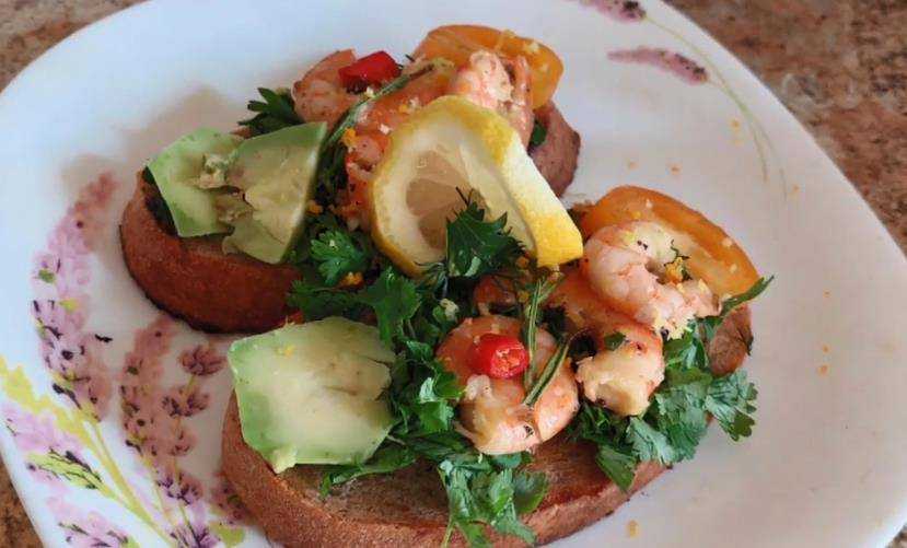 Брускетта с манго и креветками