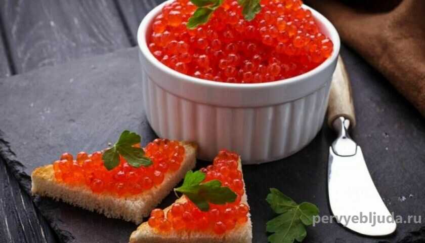 И напоследок все это великолепие украшаем красной икрой. Правда, очень красиво?