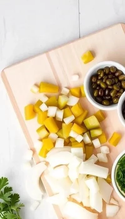 - Лук: Чтобы лук не был слишком острым, залейте его кипятком на несколько минут, а затем промойте холодной водой.
