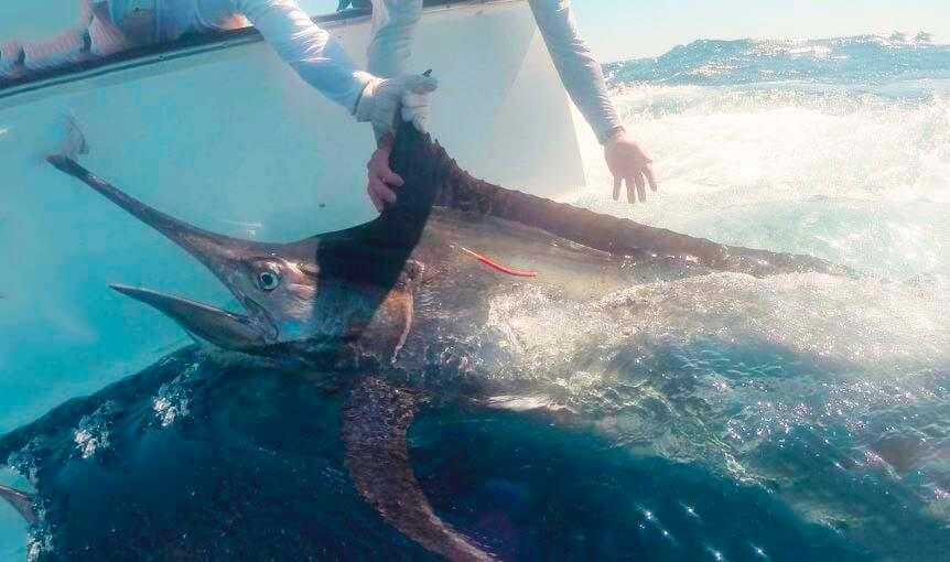 Попавшись на крючок, марлин ожесточенно сражается за свою свободу, совершая огромные прыжки над водой, порой часами изматывая и себя, и рыболова. По законодательству США выловленных в 200-мильной прибрежной зоне марлинов необходимо отпускать на волю, однако в большинстве случаев истощенные многочасовой борьбой они погибают от полученных ран.