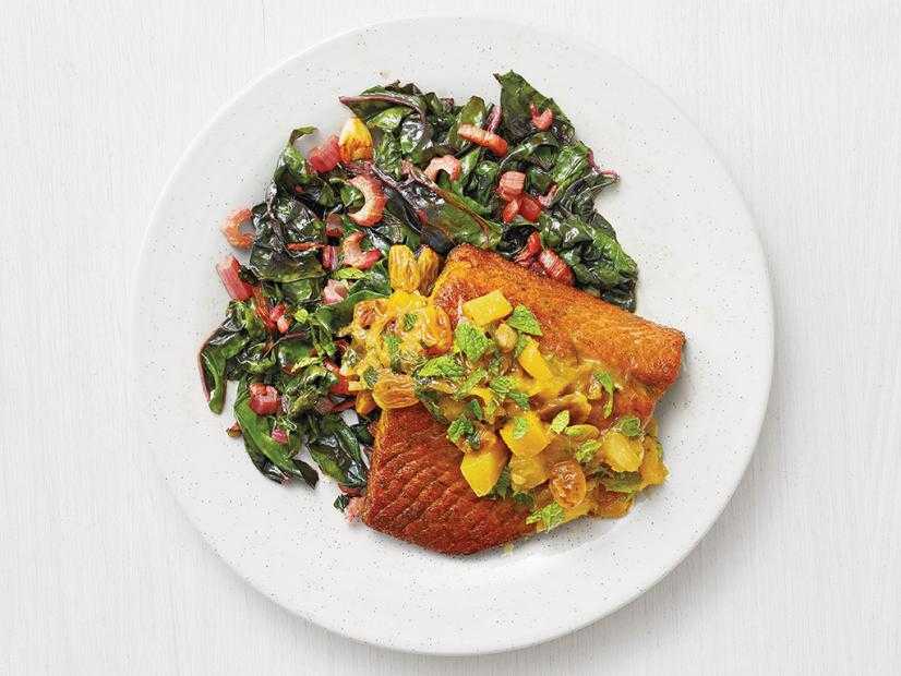 - Приправьте лосось солью и перцем. Положите рыбу кожей вниз на противень с антипригарным покрытием. Запекайте в духовке, пока лосось не будет готов, примерно 12-15 минут. Подавайте с салатом из петрушки с каперсами и жареным миндалем, либо с запеченной тыквой, по желанию.
