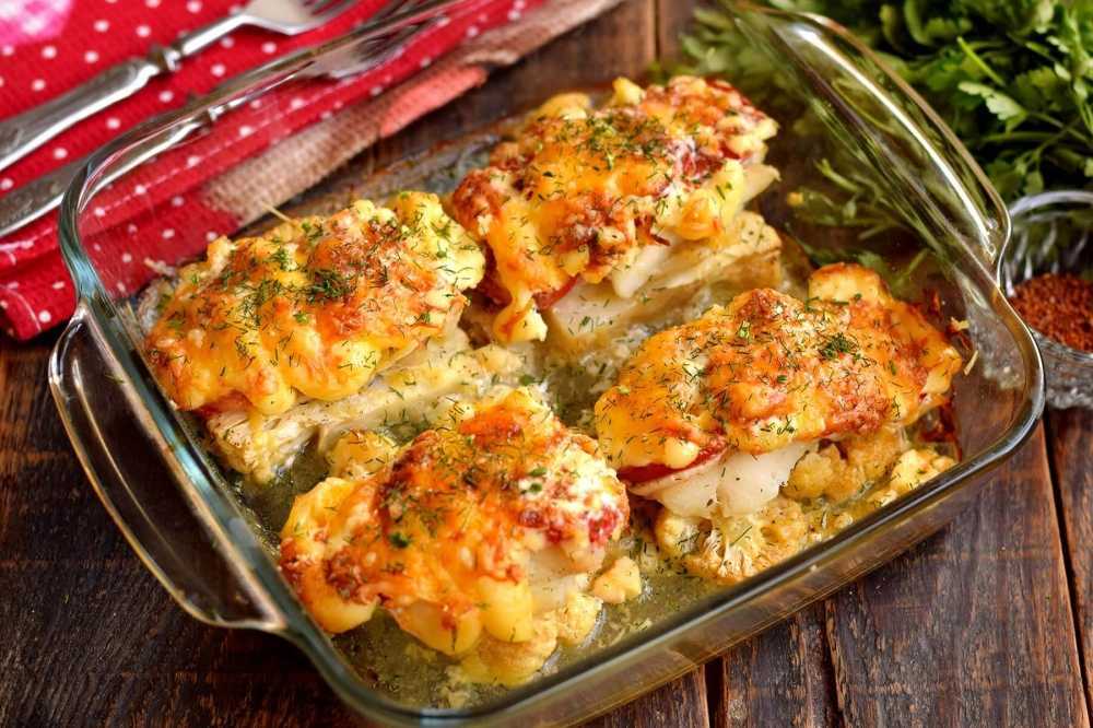 Один из самых простых способов приготовления рыбы – запечь в духовке под шубой из простых продуктов, которые всегда есть дома. Блюдо бюджетное, но очень вкусное. Из ингредиентов потребуются: