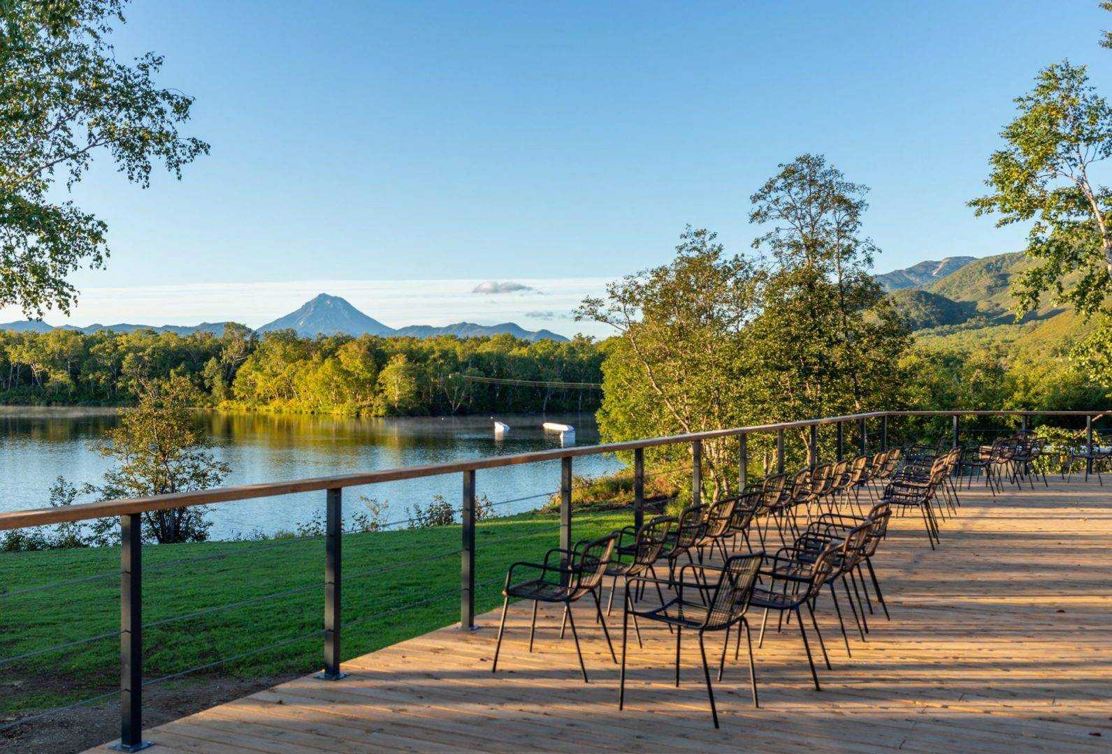 Правда, только в некоторых из них есть собственный общепит. Им может похвастать спа-отель «Лагуна» — очень модный нынче комплекс, с большой территорией, собственным озером, живописными зарослями, роскошными видами, аквацентром, всесезонным термальным бассейном под открытым небом, большой программой автомобильных туров по полуострову и целыми двумя ресторанами и кафе. Позиционирующийся как гастрономический Mishka (с московским концепт-шефом Виктором Белеем во главе и соответствующим ценником) — финалист «Пальмовой ветви 2022» и участник ТОП-10 первого рейтинга WTE Дальний Восток. Антураж его косплеит гигантскую заброшенную оранжерею, отапливаемую теми самыми знаменитыми паратунскими горячими источниками, — после термального бассейна (вода +38) под проливным осенним дождем становится ясна логика всей этой придумки. В «Мишке», кроме прочего, сервируют завтраки, с 7 утра, а чем раньше встанешь, тем сказочнее рассвет. И джетлаг, если честно, тут только на руку.