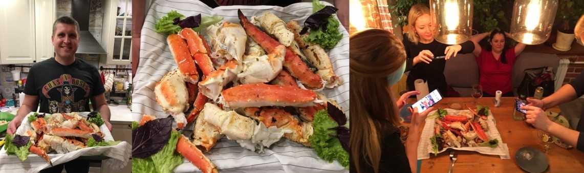 Помпезно и эффектно выносим нашего краба к гостям, фотографируемся и приступаем к трапезе.