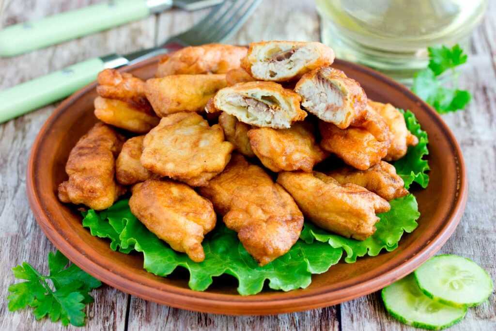 Жареные блюда не рекомендуется употреблять часто, но иногда так хочется себя побаловать и разнообразить своё меню. Да и на праздничном столе такие блюда выглядят привлекательно. Для того чтобы кляр был воздушным и лёгким, необходимо отдельно взбить белки и добавить их в конце приготовления, перед самой жаркой.