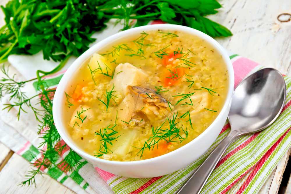 Для его приготовления потребуются:• мясо щуки — 300 г;• овощной бульон — 2 л;• лук репчатый — 2 шт.;• морковь — 1 шт.;• растительное масло — 3 ст.л.;• рис — 50 г;• зелень — пучок;• соль и перец — по вкусу.