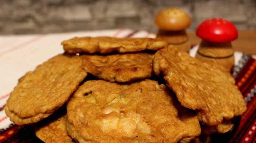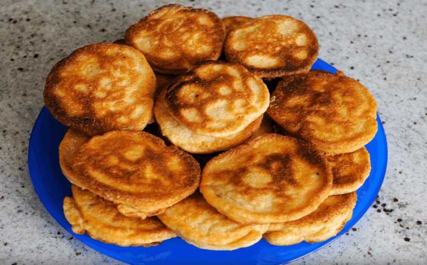 - При помощи столовой ложки из массы формируют оладьи и перекладывают их на сковороду. С каждой стороны угощение обжаривают около 3 минут.