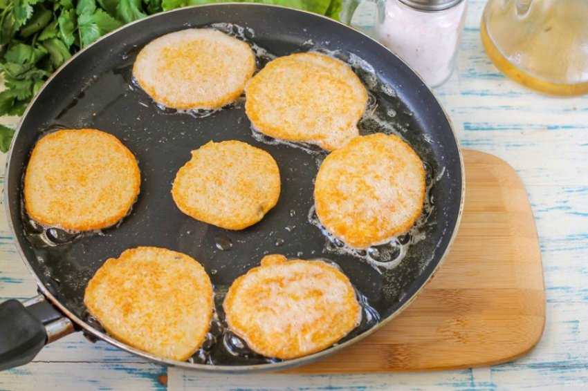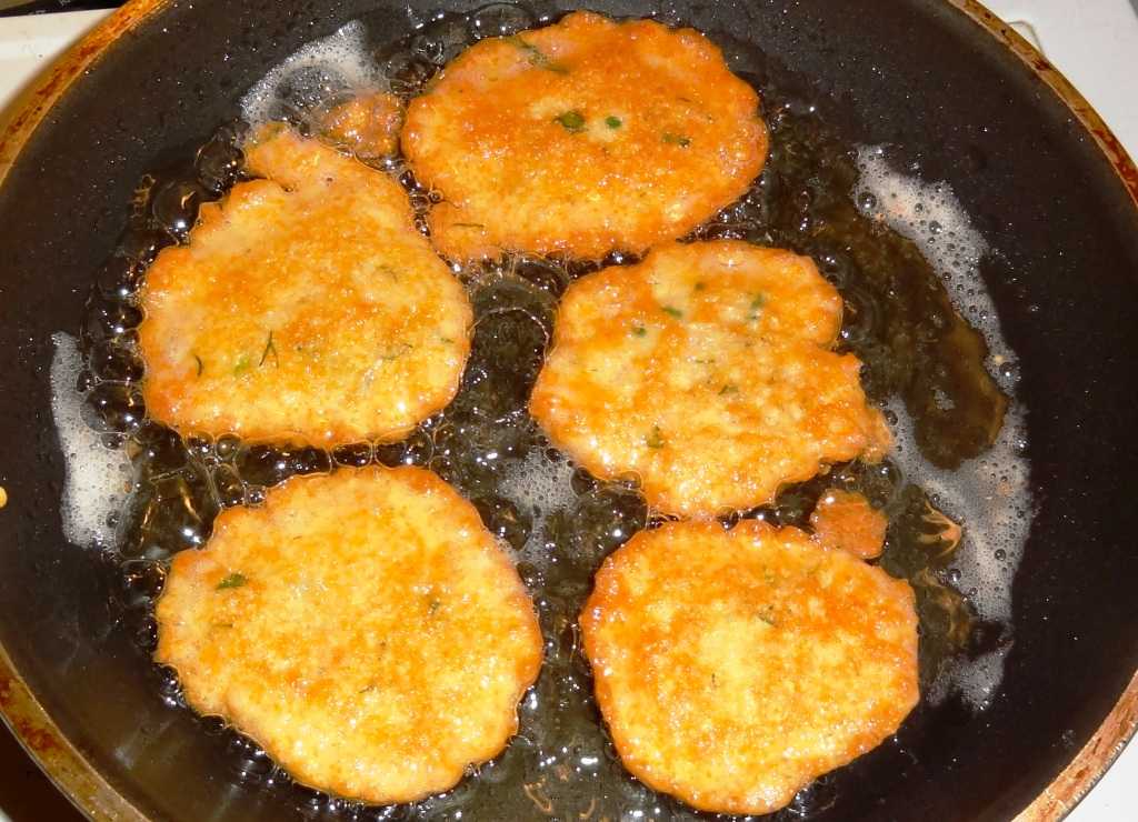 - Из полученной массы формируют небольшие котлеты и обжаривают их с добавлением масла до золотистого цвета.