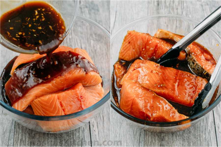 - оботрите рыбу готовым маринадом (по тому рецепту, который мы описывали выше)