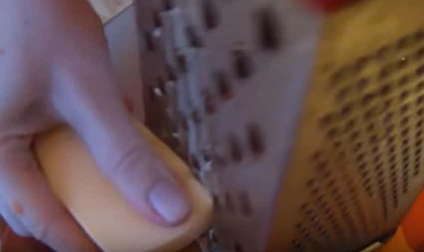 Пармезан или другой твердый сыр натрите на терке с крупными отверстиями.