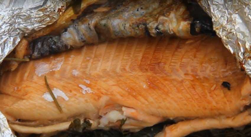 Простой и вкусный рецепт шашлыка из кижуча целиком на мангале на решетке